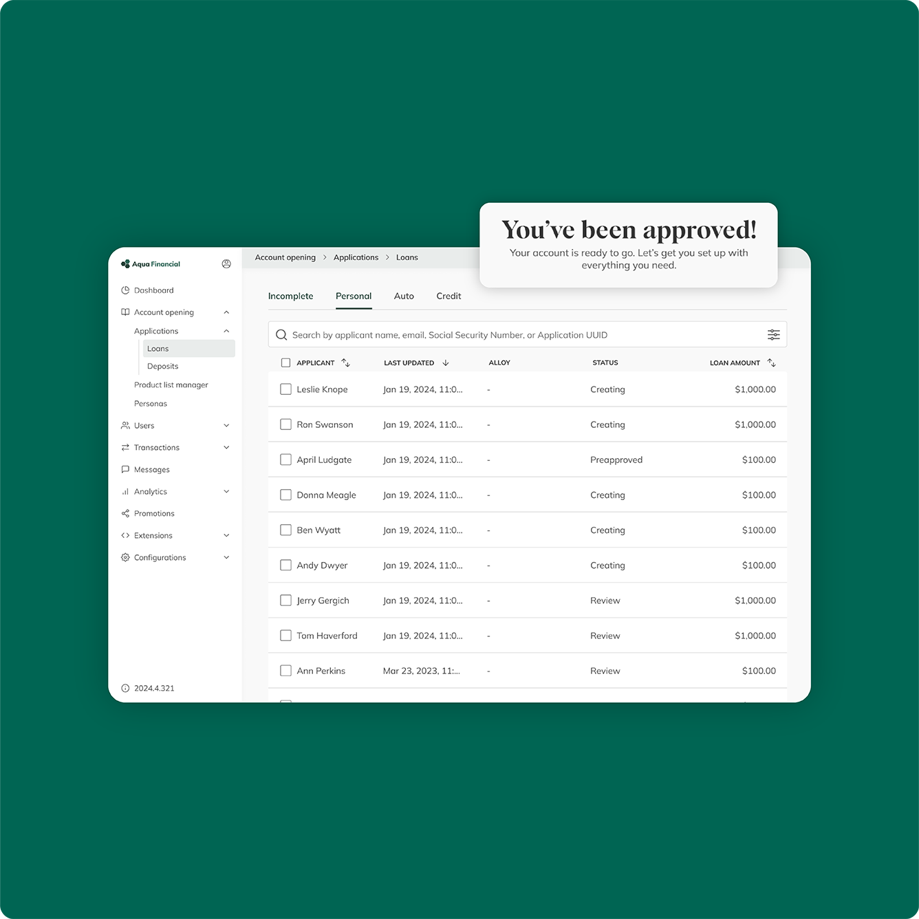 Narmi Lend is designed to complement, not replace, your existing LOS. Most traditional LOS platforms are effective workflow tools, but are too reactive. Narmi Lend works higher up the funnel, generating net-new demand by surfacing personalized, pre-qualified offers proactively inside digital banking. We then send those fully qualified, high-intent borrowers directly into your existing LOS process, making your current system work harder and converting passive users into active borrowers.